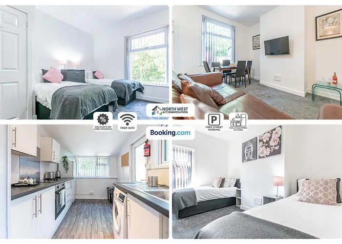Die 2-Zimmer-Villa Spacious 3 Bedroom House In Pr6 Free Parking & Wifi Sleeps 6 verfügt über eine voll ausgestattete Küchenzeile mit Annehmlichkeiten wie einem Wasserkocher, einem Kühlschrank und einem Herd für die Selbstversorgung. Das Restaurant Browns fish and chips mit britischen Gerichten ist in 6 Fußminuten Entfernung von dieser Unterkunft in Chorley gelegen. Die Villa Spacious 3 Bedroom House In Pr6 Free Parking & Wifi Sleeps 6 liegt außerdem in unmittelbarer Nähe zur Bushaltestelle Beaconsfield Terrace.